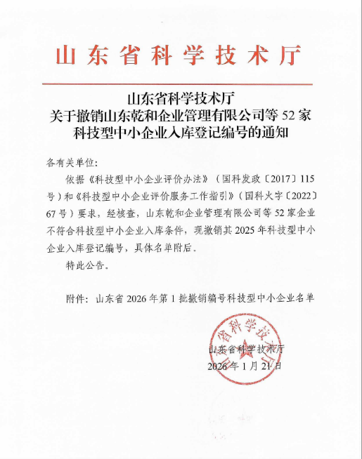 山东省2026年第1批撤销编号科技型中小企业名单.pdf FILE