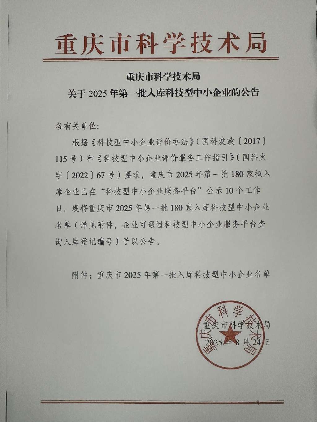 重庆市2025年第1批入库科技型中小企业名单公告正文.jpg PICTURE