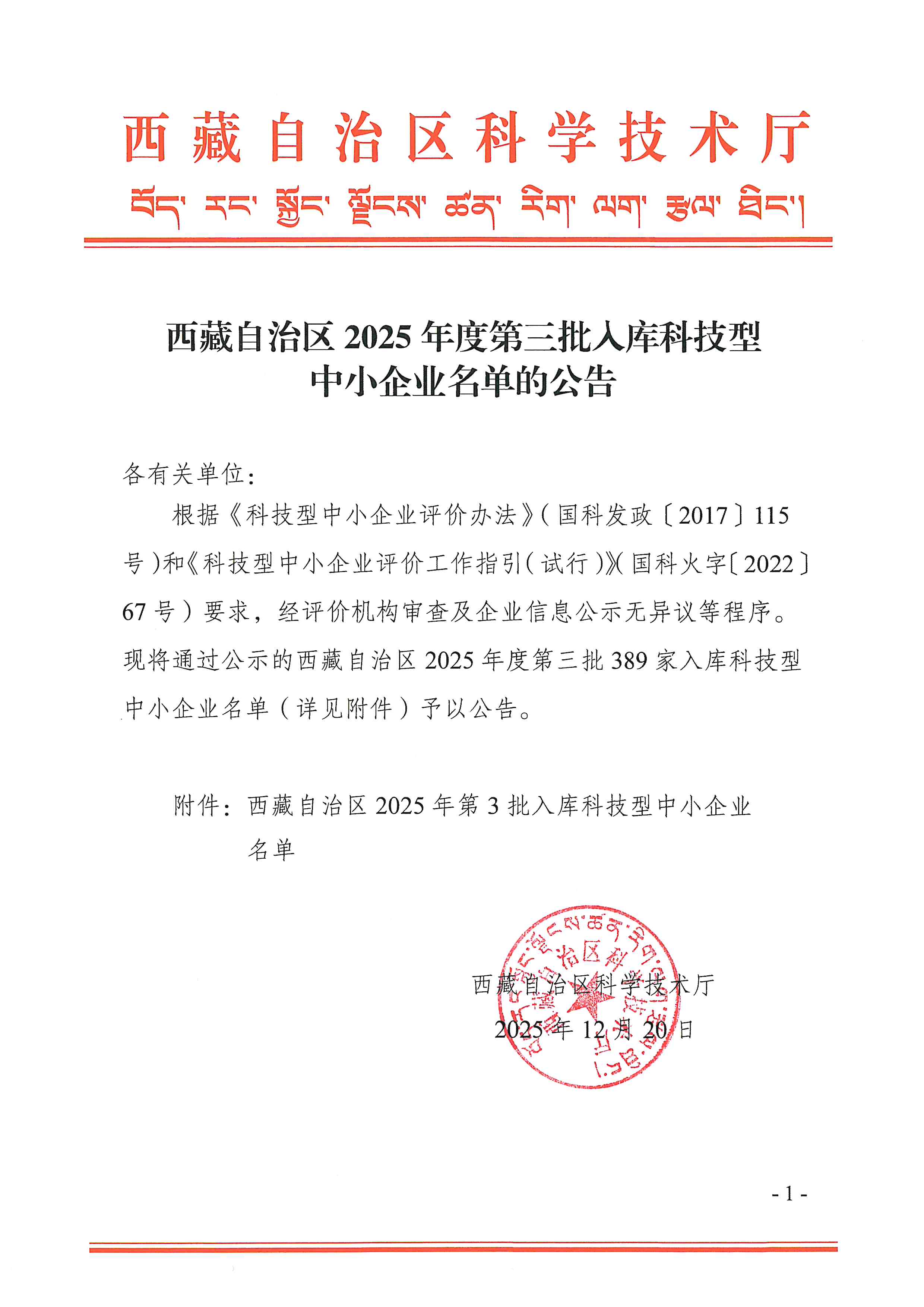西藏自治区2025年第3批入库科技型中小企业名单公告正文.jpg PICTURE