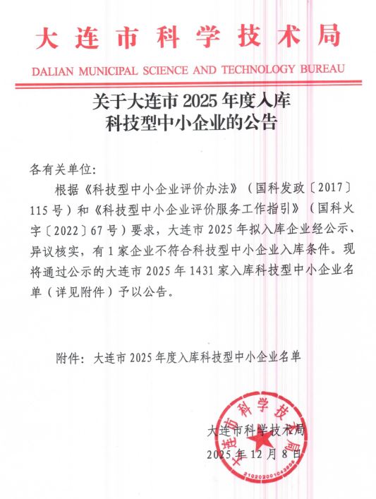 大连市2025年第1批入库科技型中小企业名单公告正文.jpg PICTURE